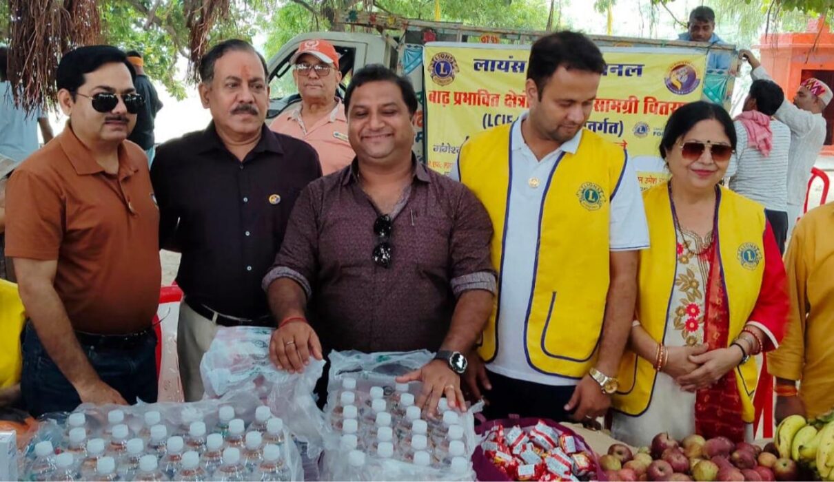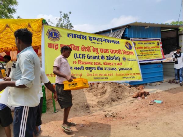 Lions Clubs International Foundation (LCIF) showed up as a lifeline during this crisis, providing Lions of District 321E with a US$12,000 Emergency Grant to bring relief to over 4,500 flood victims. “After receiving the grant, we reassessed the emergency situation of several flood-affected areas of District 321E and found three locations where residents were severely impacted: Gaughat, Muthi Ganj, Prayagraj; Kailashpuri, Salori, Prayagraj; and Chilh, Mirzapur,” says District Governor Dr. Arpan Dhar Dubey.