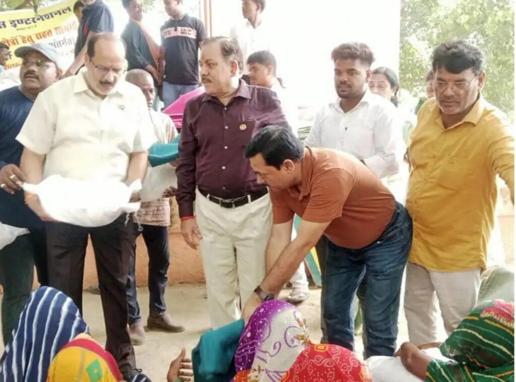 Lions organized three major relief camps focused on the pressing needs of the displaced population. Every family received a bag of essential raw food materials, including wheat flour, rice, pulses, jaggery, turmeric, cumin and salt, allowing them to make their own meals again. Volunteers also distributed milk, fruit and bread. Due to the cold conditions and lack of adequate clothing, Lions also offered additional clothing and 600 blankets, prioritizing those who were sick, victims who were elderly and families who lost everything.