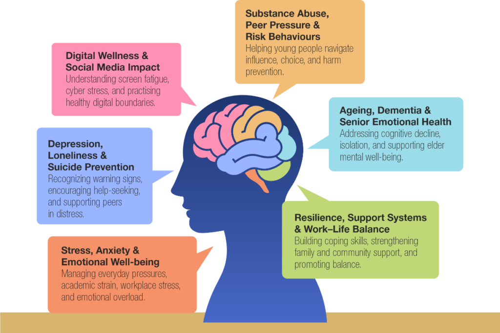 Young people report rising anxiety and poor sleep; families struggle to recognize early signs; many adults carry stress and loneliness silently; and older persons often face emotional and cognitive decline with little structured support. Yet stigma and hesitation continue to keep help out of reach for many.